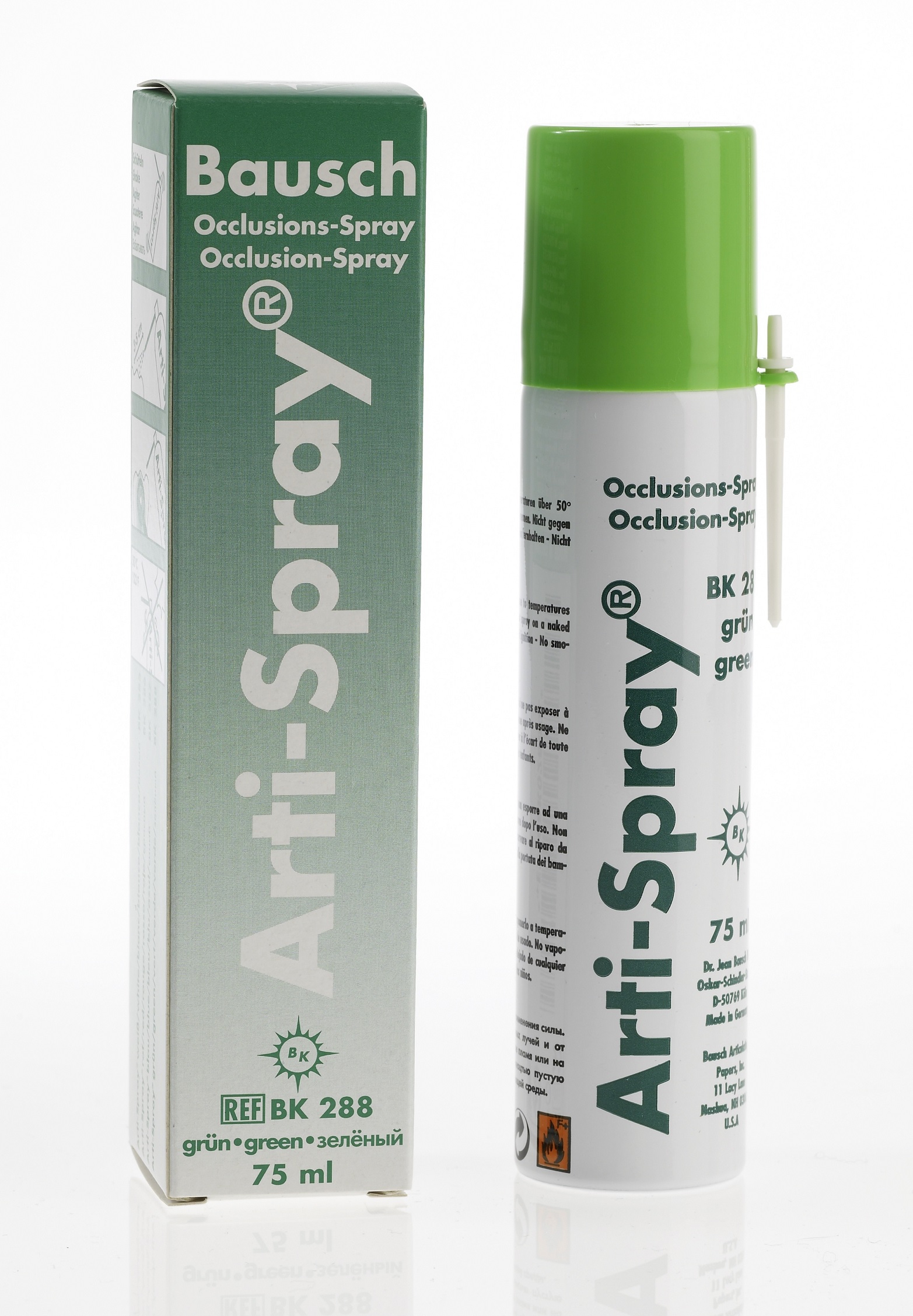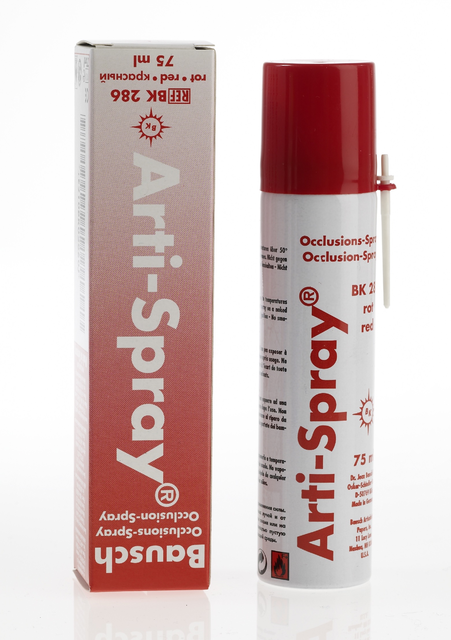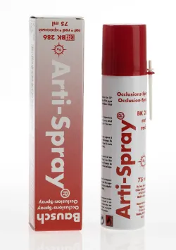 Arti-Spray® je univerzálny farebný indikátor na otestovanie okluzálnych kontaktných bodov a na presné prispôsobenie koruniek a mostíkov.
