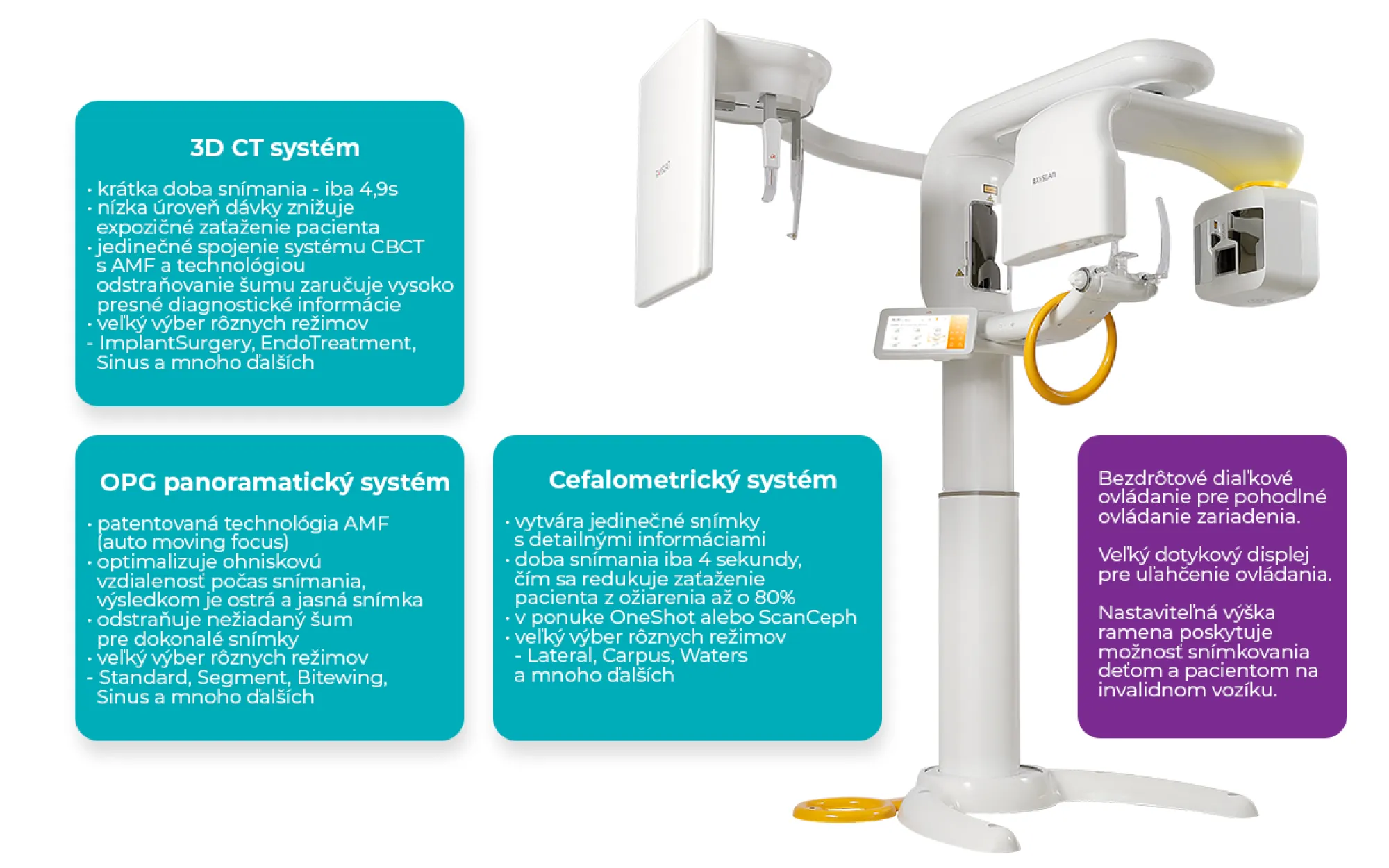 • jedinečné spojenie systému CBCT s AMF a technológiou odstraňovanie šumu zaručuje vysoko presné diagnostické informácie