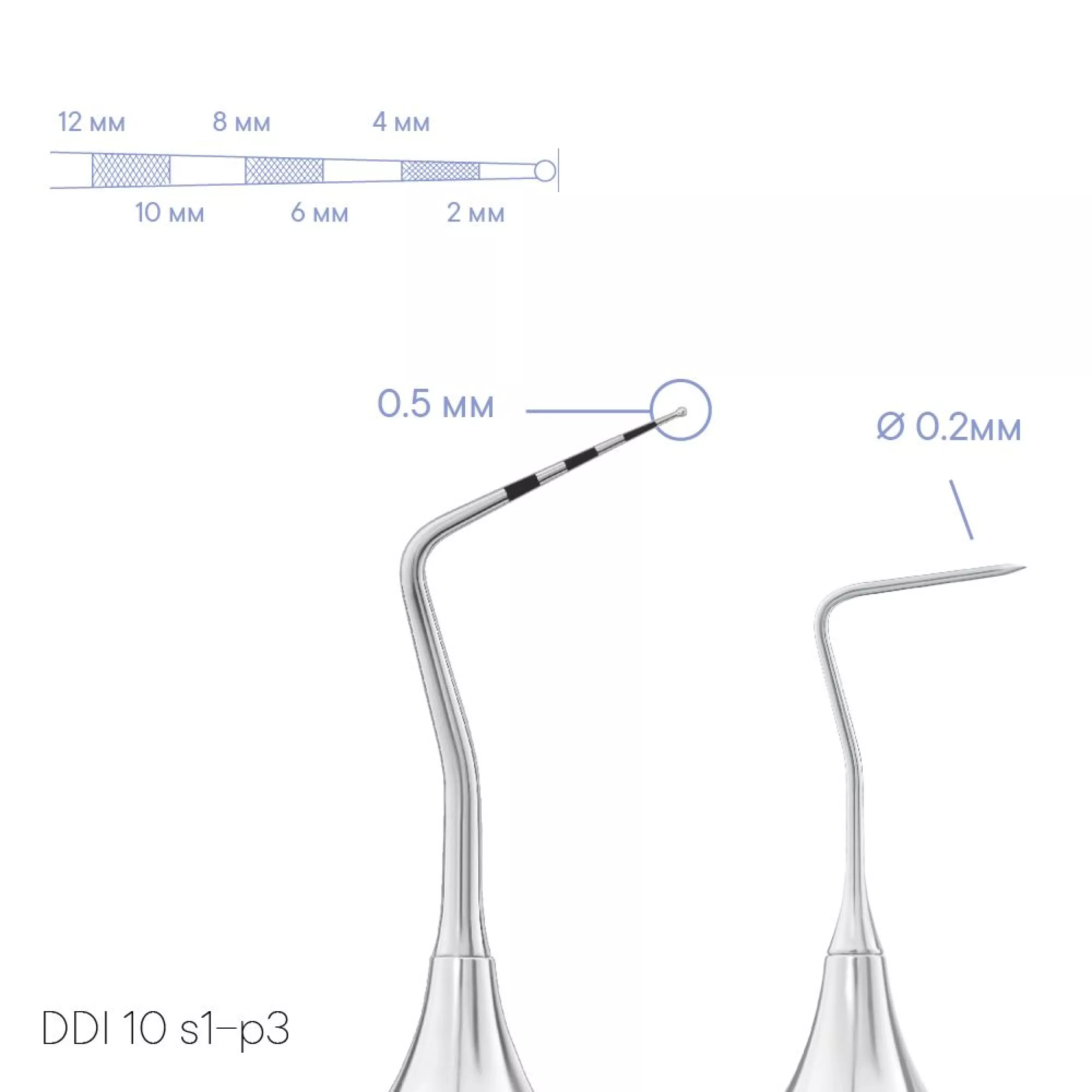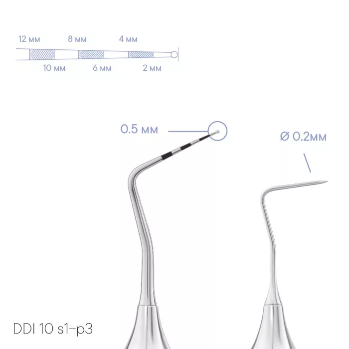 Sonda má 2 mm stupnicu. Guličkový koniec s priemerom 0,5 mm umožňuje čo najpresnejšie meranie a zabraňuje poškodeniu tkaniva.