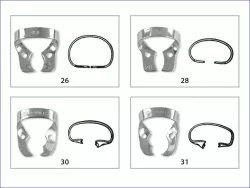 Spona 31 - molárová spona bez krídiel. Spony Fit kofferdam sa vyznačujú tenkostennou, vysokou kvalitou a obzvlášť vysokou upínacou silou.