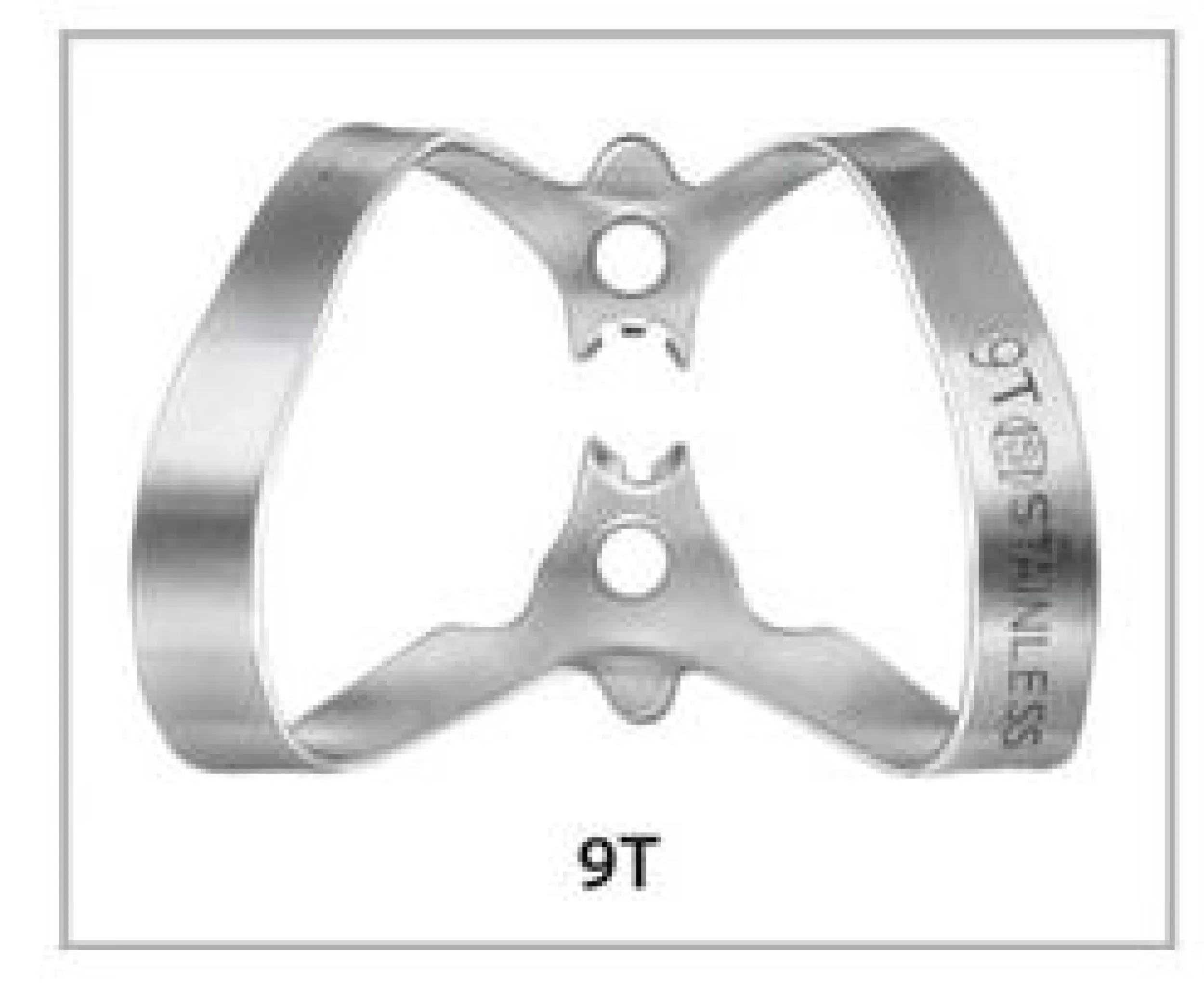 Spona 9T - molárová spona s krídelkami s jemným ozubením pre lepšiu priľnavosť na zube.