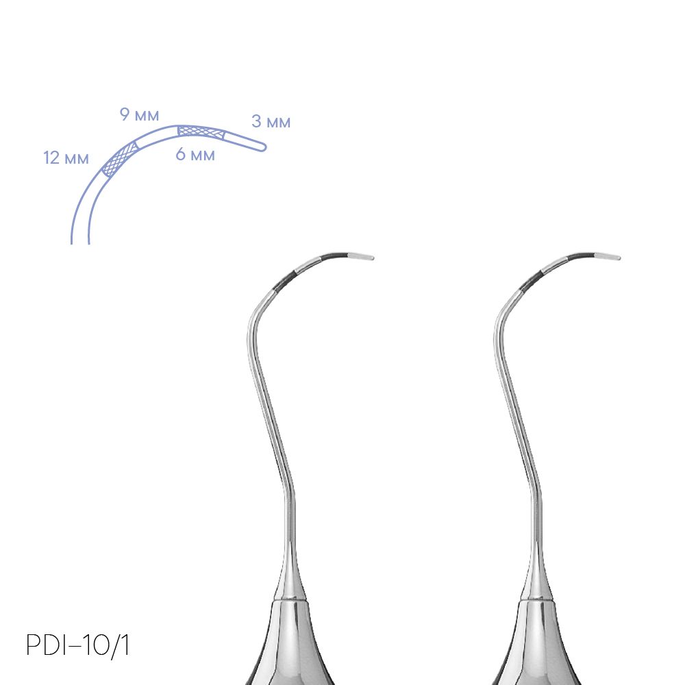 Parodontálna sonda s mierkou 3-6-9-12 mm.