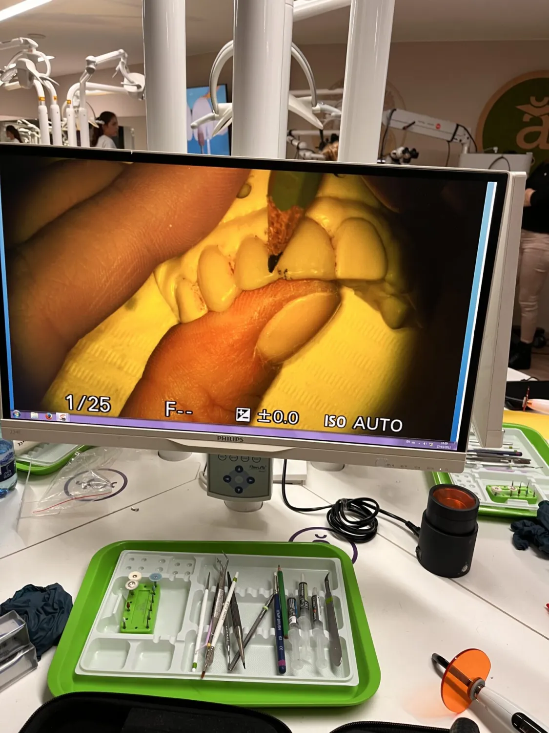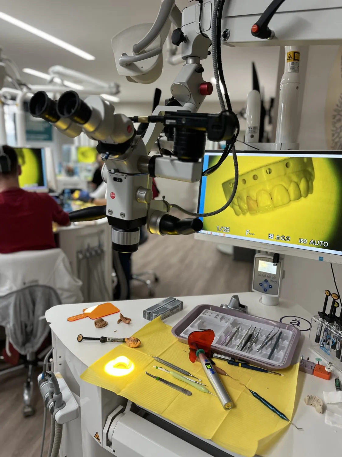 Praktická časť tvorí hlavné jadro kurzu. Všetko potrebné vybavenie bude zabezpečené (modely, modelačné a preparačné nástroje) - prednášajúci bude mať pracovnú jednotku s mikroskopom, vďaka ktorému sa bude prenášať detailný obraz všetkým účastníkom. Odporúčame si priniesť aj vlastné vybavenie, na ktoré ste zvyknutí (lupy, fotoaparát, obľubené nástroje a brúsne prostriedky).