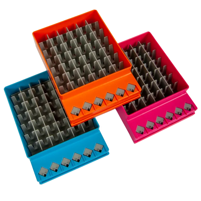CAD/CAM Block Organizer™ Pokiaľ ide o skladovanie frézovacích blokov pre CAD/CAM frézky, často môžu skončiť rozhádzané v zásuvkách. To sťažuje sledovanie zásob alebo nájdenie toho, čo potrebujete, keď to potrebujete. Náš organizér Block Organizer™ je tu, aby vám pomohol! Tieto organizéry sa zmestia do väčšiny zásuviek a sú navrhnuté tak, aby pomohli zorganizovať chaos tým, že poskytnú úhľadný úložný systém vo vašich existujúcich skrinkách.